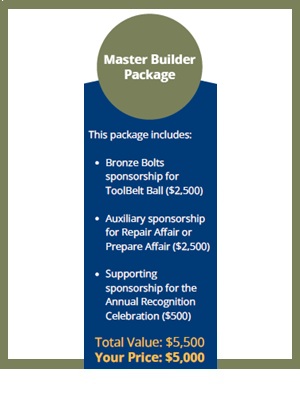 Package - Sponsorships of ToolBelt Ball, Repair or Prepare Affair, and Annual Recognition Celebration at the Bronze Bolts, Auxiliary, and Supporting Levels.
